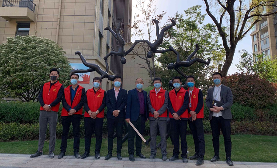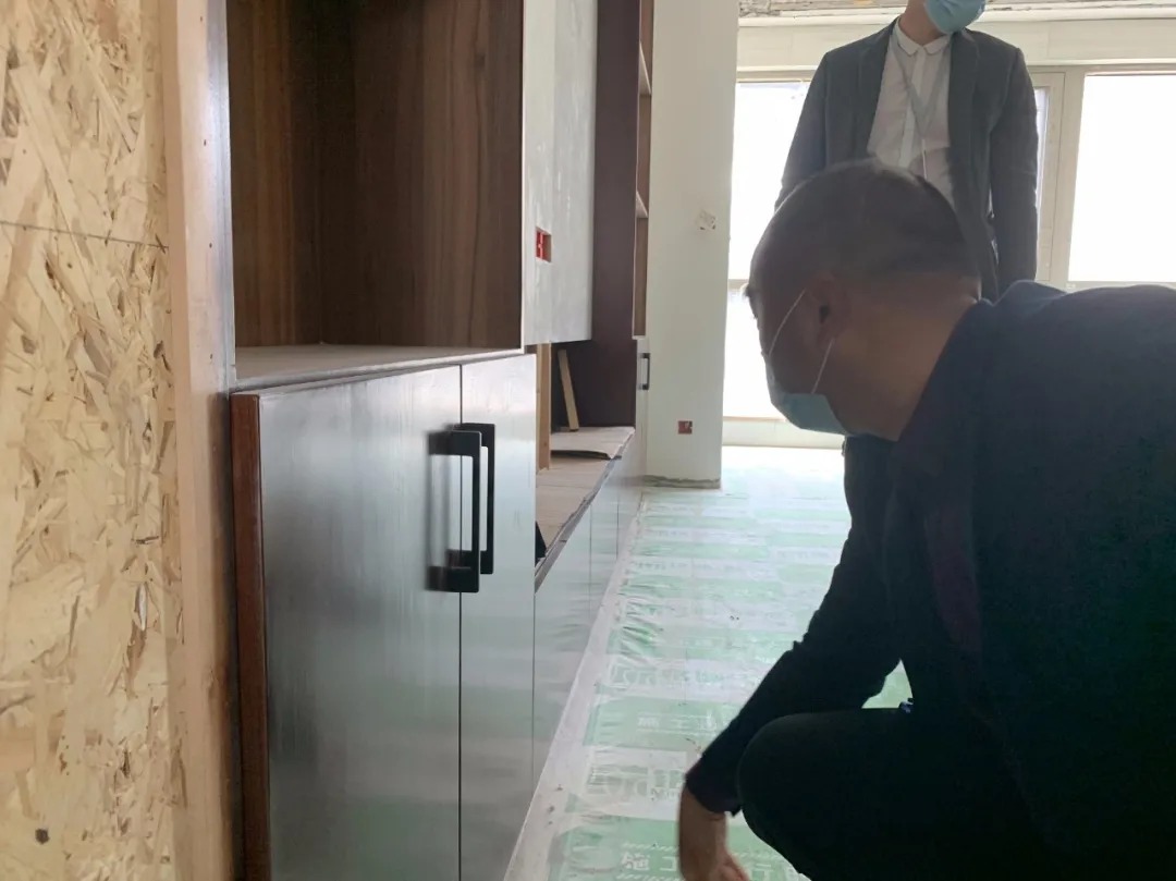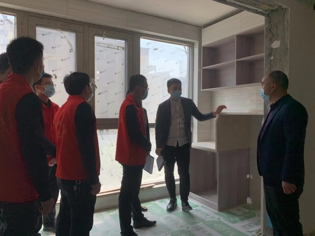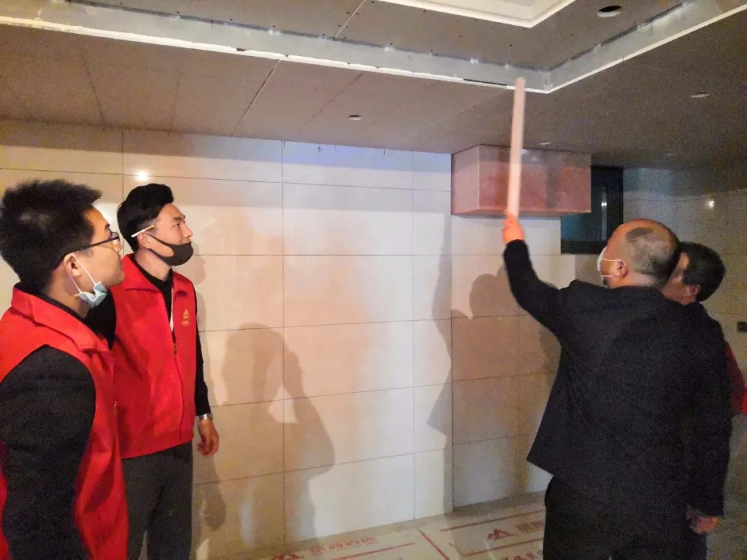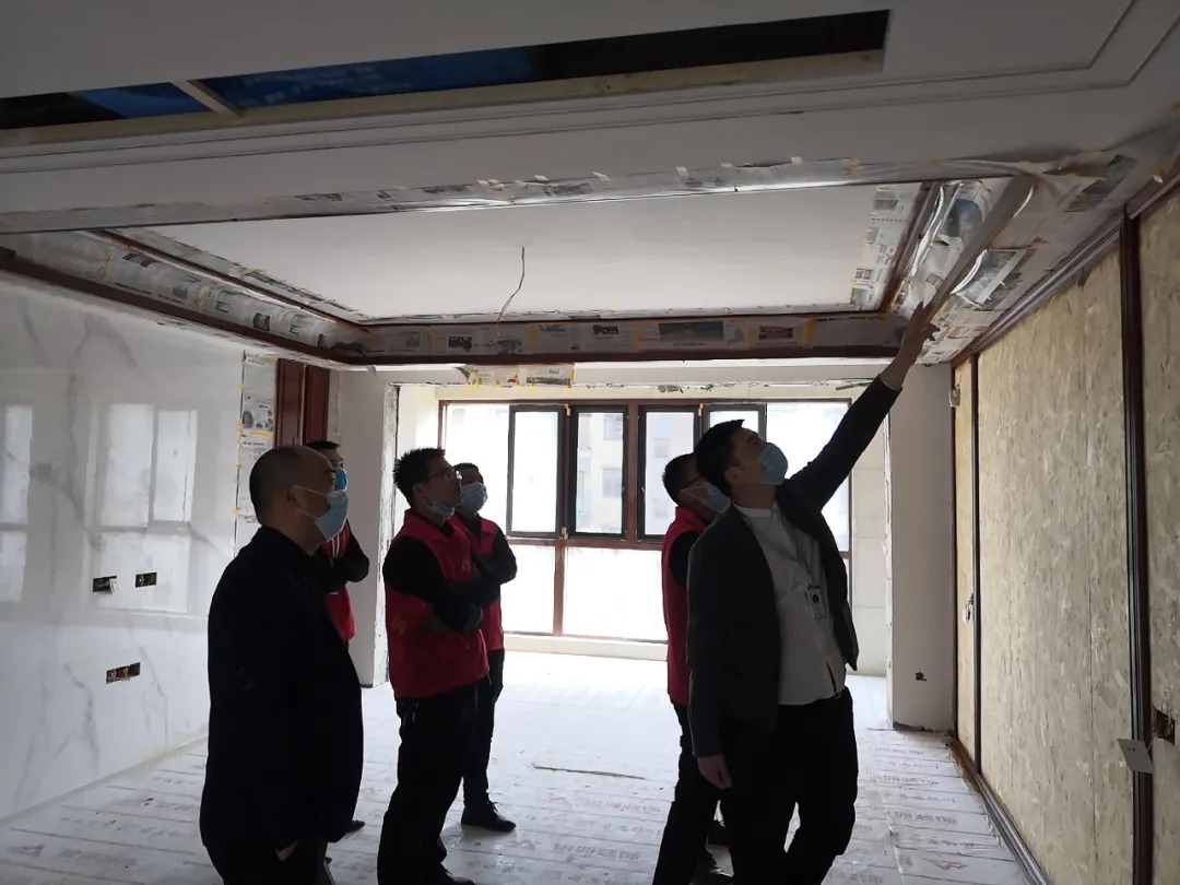 銘洲裝飾集團總經(jīng)理組織設(shè)計部、工程部、客服部以及市場部進行工程巡檢,