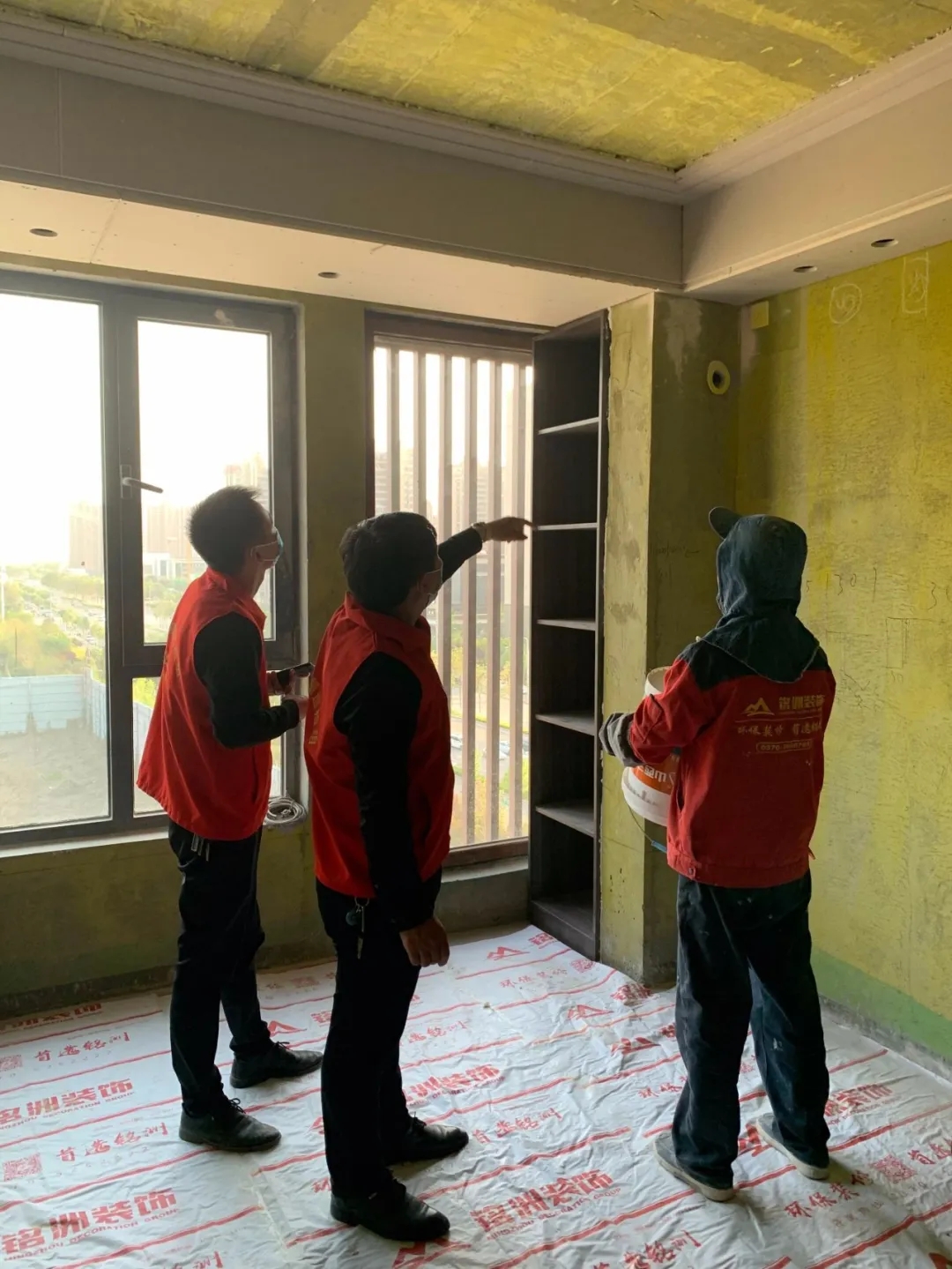 ▲嚴(yán)格執(zhí)行銘洲裝飾《施工管理標(biāo)準(zhǔn)》的師傅們