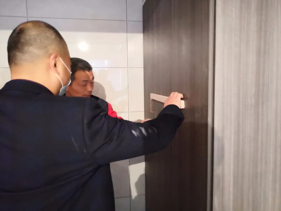 ▲用“質(zhì)檢尺”測量衣柜把手的高度是否一致