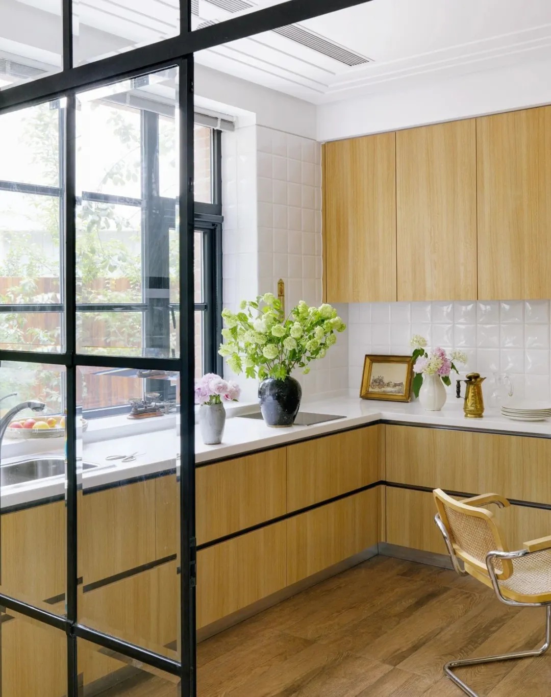 這些復(fù)古的老家具,搭配溫暖的木材料、通透陽光,也恰好烘托出張靜初知性優(yōu)雅的女性氣質(zhì)。