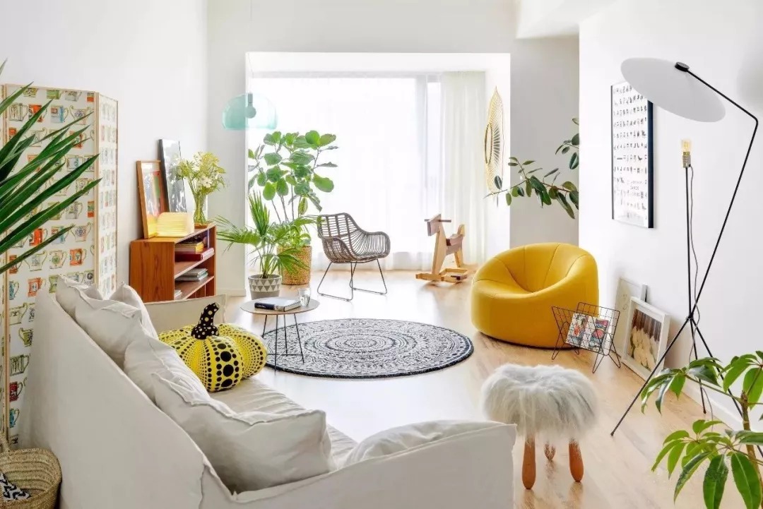 室內(nèi)有琴葉榕、虎尾蘭等綠植進(jìn)行局部點(diǎn)綴,為客廳增添了更多生機(jī),一股清新愜意的氣息撲面而來。