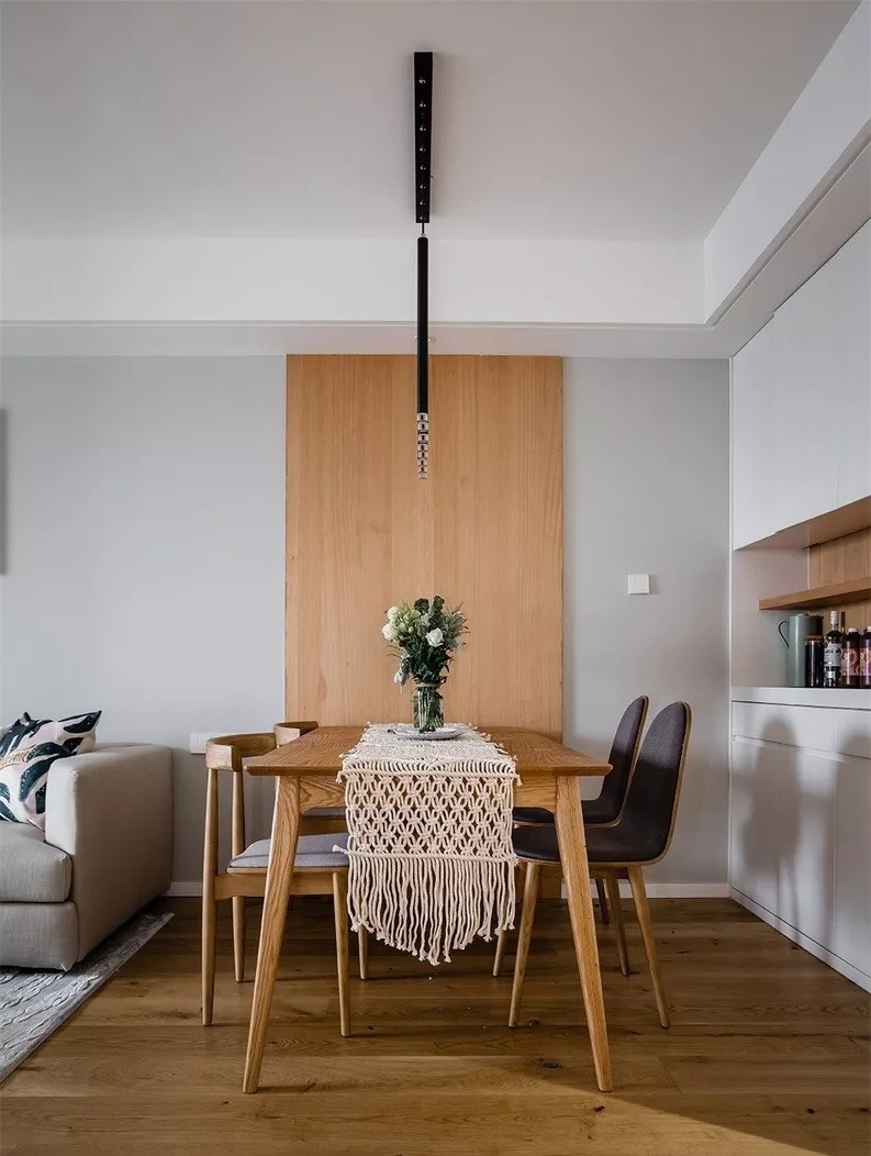 餐廳裝飾元素少,大量留白,更多的利用直角線條打造出美感,簡(jiǎn)單搭配就有了這個(gè)實(shí)用美觀并存的溫馨之地。