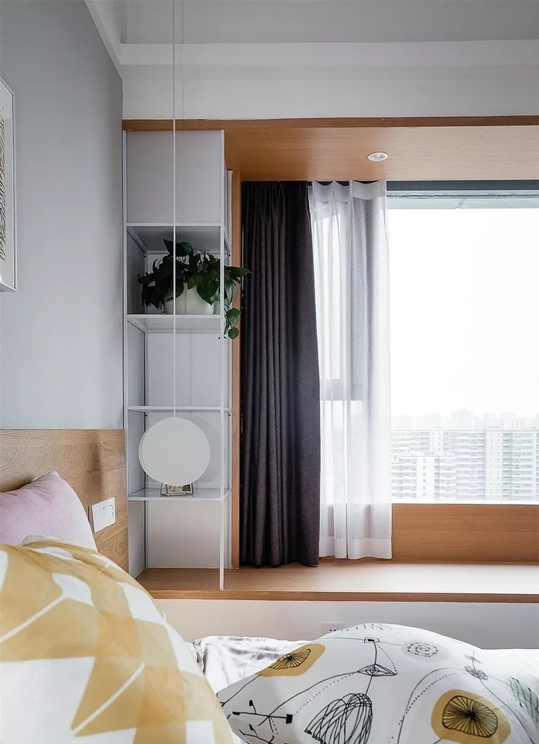 次臥簡(jiǎn)潔素雅,色調(diào)沉穩(wěn)寧?kù)o,床頭掛畫(huà)購(gòu)于國(guó)外建筑大師的畫(huà),成了次臥的點(diǎn)睛之筆,一切都顯得和諧溫暖。