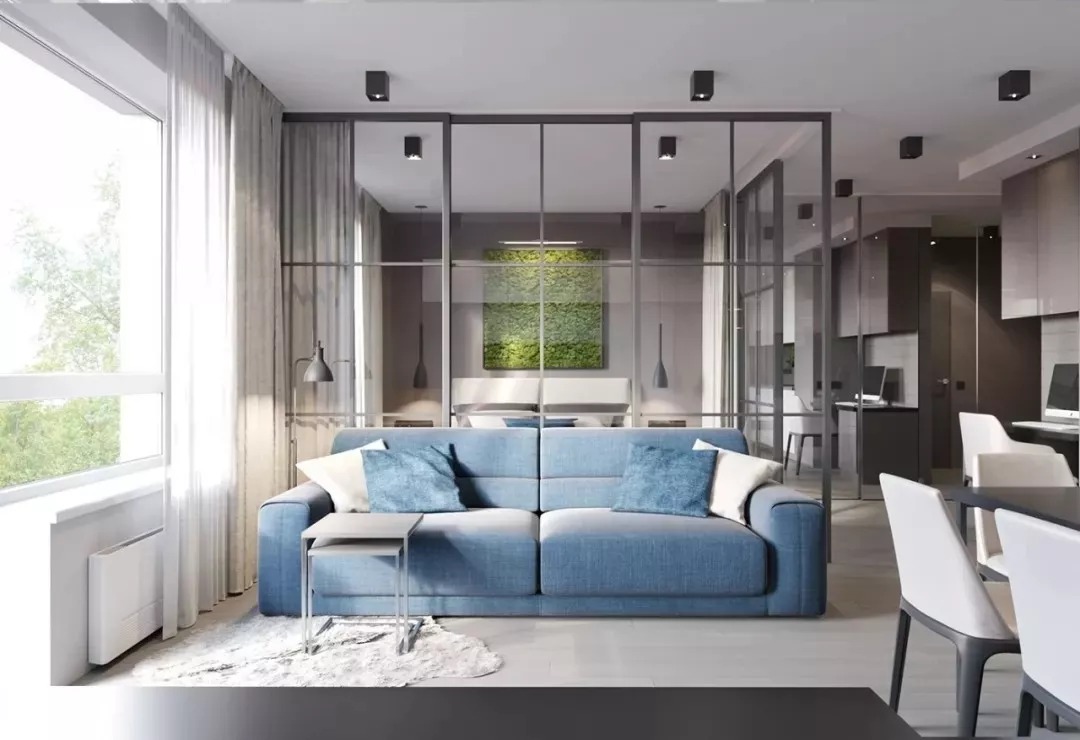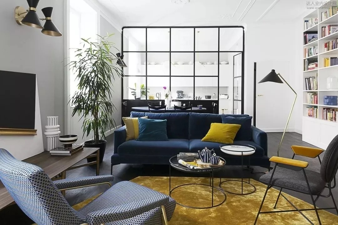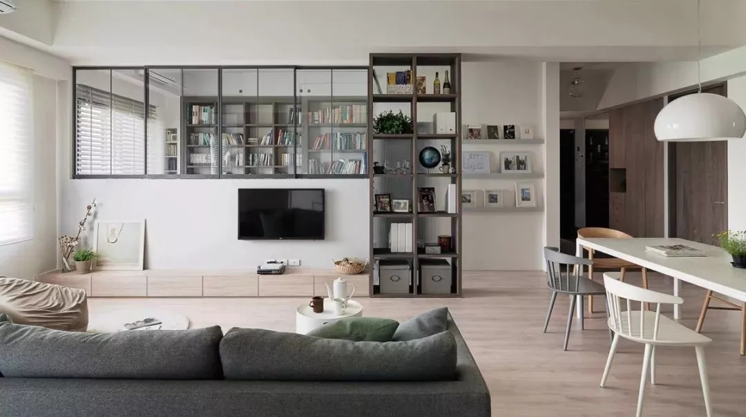 時(shí)下流行的隔斷形式有很多,黑框玻璃門是非常理想的功能分區(qū)的辦法。它時(shí)尚、精致、“隔而不斷”,而且會(huì)讓整個(gè)空間都有明亮通透的感覺。