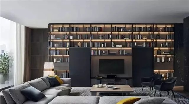 現(xiàn)在流行一個(gè)概念,叫做“家庭圖書館”。在客廳中也能充分利用空白的墻面,將書架嵌入墻體之中,從而打造出一個(gè)書香氣質(zhì)的家庭閱讀區(qū)。