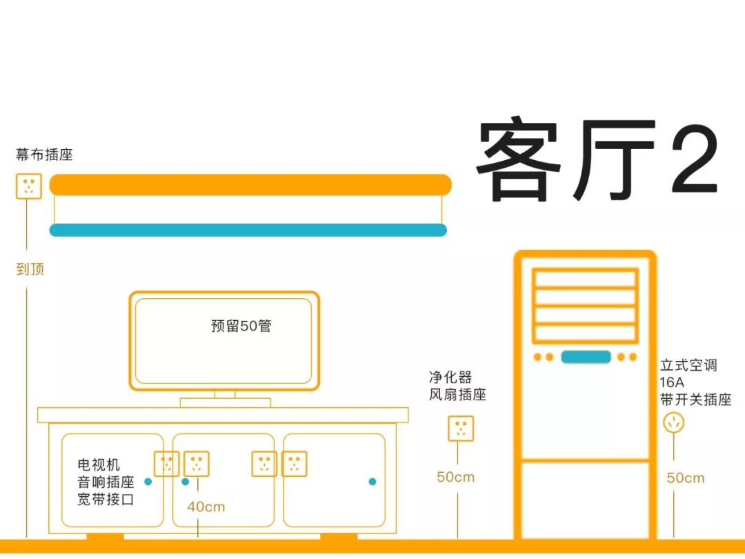 2、空調(diào)插座:空調(diào)屬于大功率電器,需配備16A三孔插座,并且確定是懸掛式空調(diào)還是柜式空調(diào)。