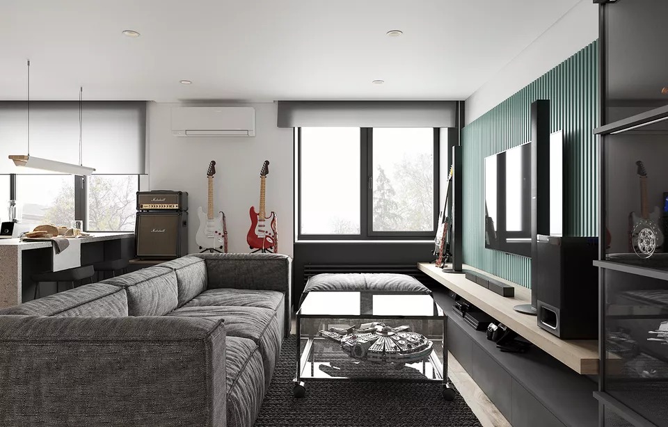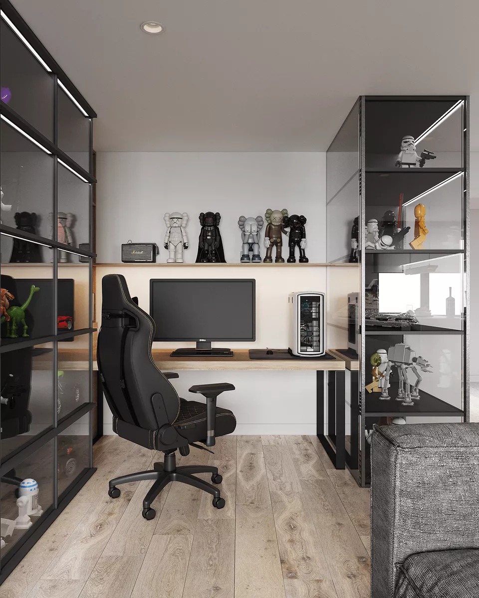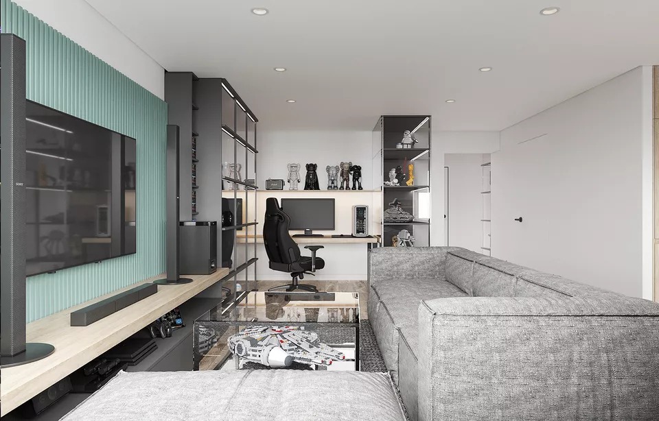 客廳右側(cè)是業(yè)主一個集休閑、娛樂的區(qū)域,