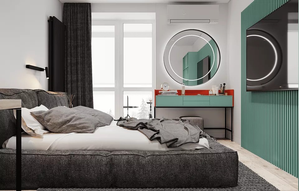 主臥室繼續(xù)延續(xù)客廳主調(diào),