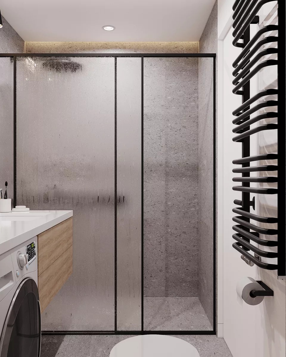 推拉門設(shè)計將空間分隔開來,洗漱、淋浴可同時進行,