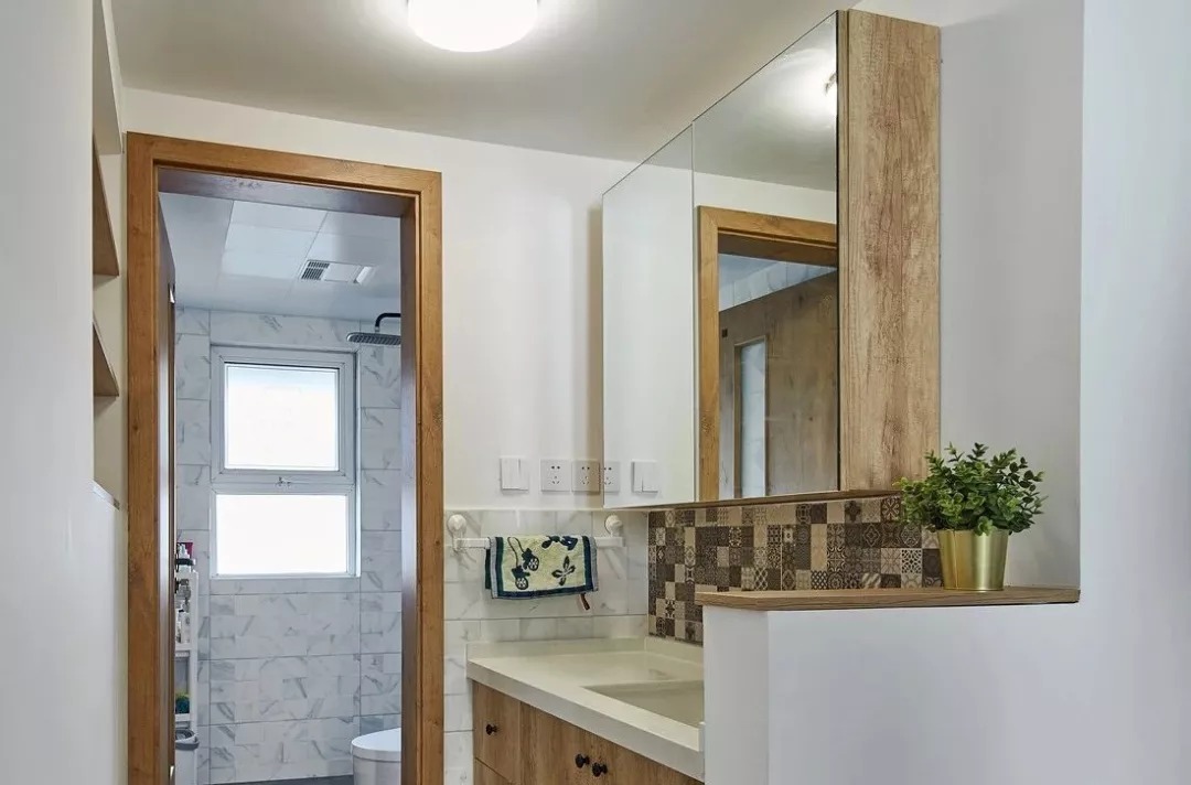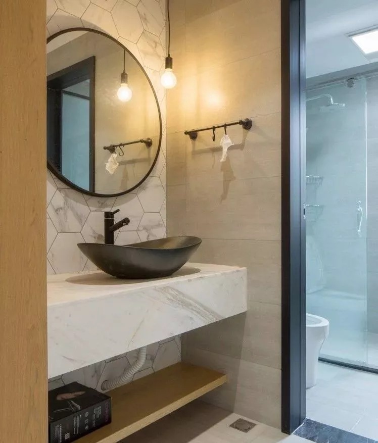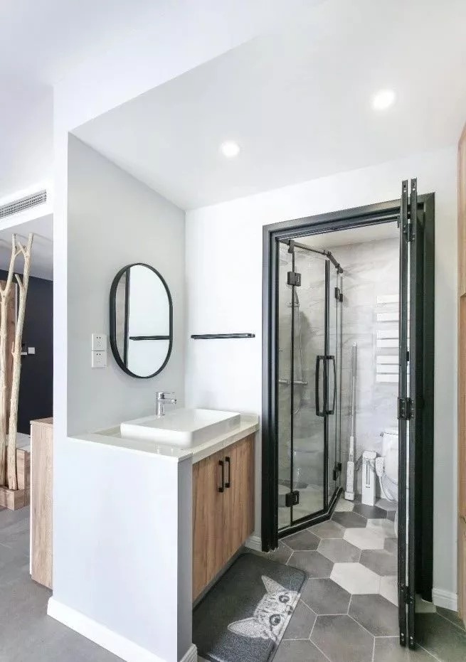 以上就是關(guān)于洗漱臺(tái)外移的內(nèi)容,只是想要實(shí)現(xiàn)干濕分離又礙于狹窄的衛(wèi)生間空間時(shí),把洗漱臺(tái)挪出來,是個(gè)完全合理并且可行的思路。