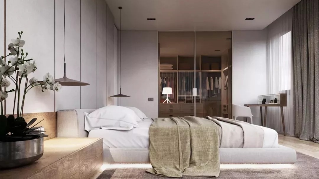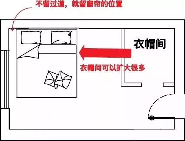 衣帽間最方便的位置就是緊貼臥室。一般來說,只要主臥旁邊的墻體不是承重墻,那我們就有操作空間造出一個(gè)衣帽間。