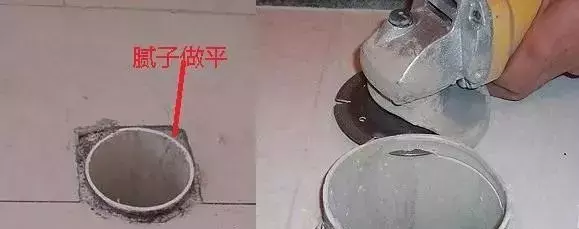 5、安裝馬桶要先把下水管子削平,再用膩?zhàn)影褕A形的下水管子周?chē)卮u交接出抹平,然后法蘭緊貼地面,這樣才不會(huì)有異味漏出。